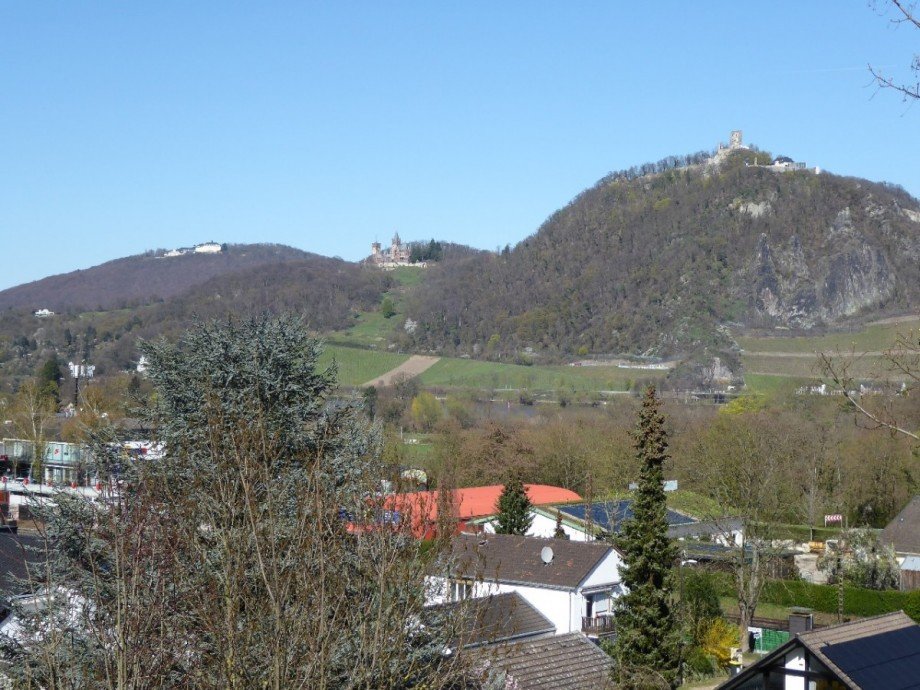 •großer Balkon über die gesamte Hausbreite mit atemberaubenden Blick auf den Drachenfels, die Drachenburg und den Petersberg,